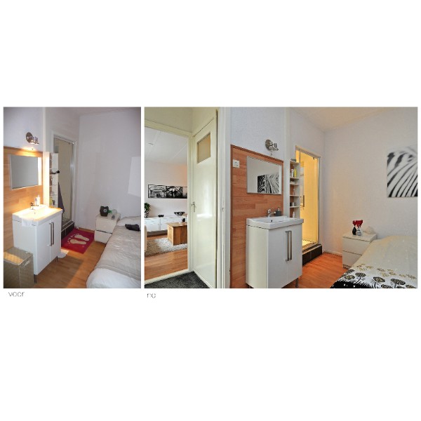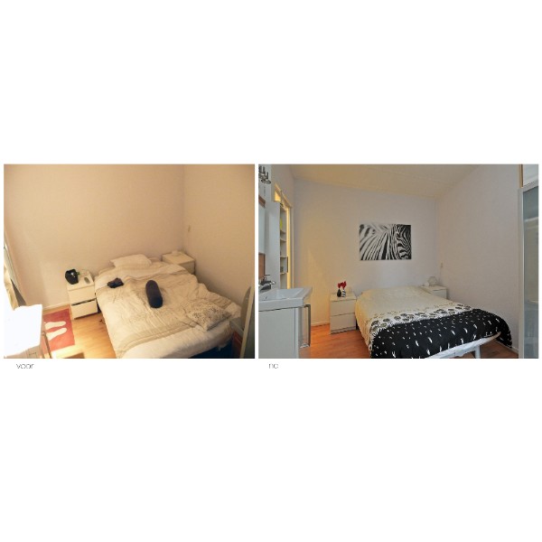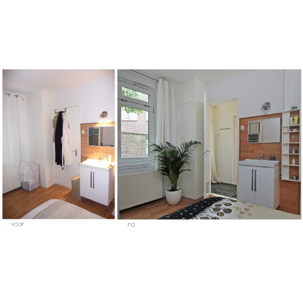 Doormiddel van het wegruimen van overbodige meubelstukken en persoonlijke spullen, en het toevoegen van neutrale maar sfeervolle accessoires is het ons gelukt om de woning een ruimtelijke sfeer te laten ademen.