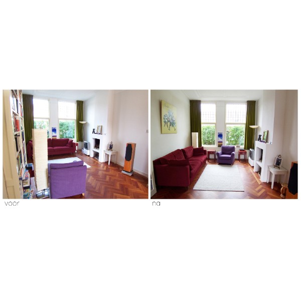 Doormiddel van opruimen, weghalen en een nieuwe meubelopstelling hebben wij in 2 uur tijd gezorgt dat de woning de juiste uitstraling kreeg voor de foto's op Funda en in de verkoopbrochure.